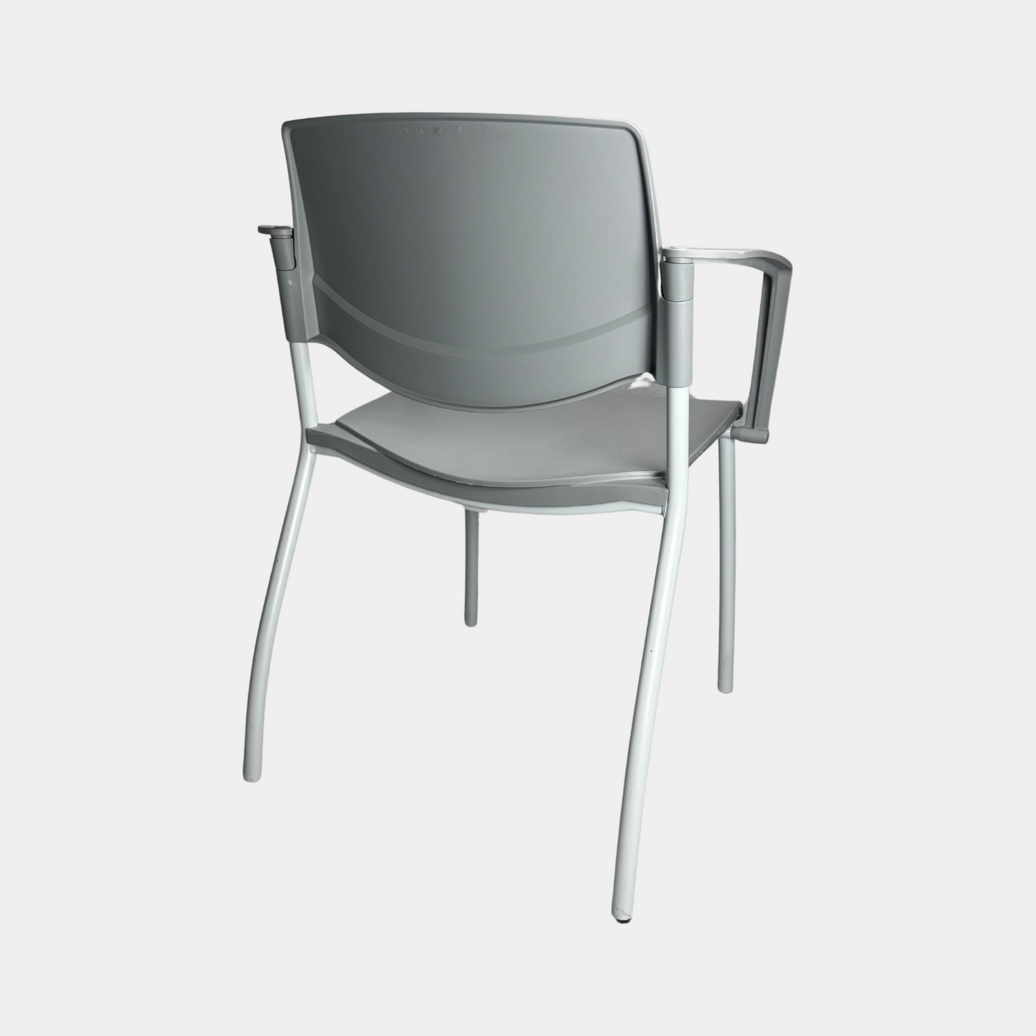 Tuolissa on muotoiltu istuin ja selkänoja, jotka antavat hyvän tuen pidempäänkin istumiseen. Käsinojat tekevät tuolista mukavamman ja tukevamman käyttää, ja vahva metallirunko varmistaa pitkäikäisyyden kovassakin käytössä. Pinottavuus tekee säilytyksestä ja tilan joustavasta käytöstä helppoa.